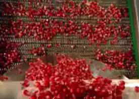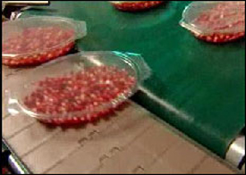 Pomegranate arils are separated in a specialized plant and automatically packaged in clear containers.