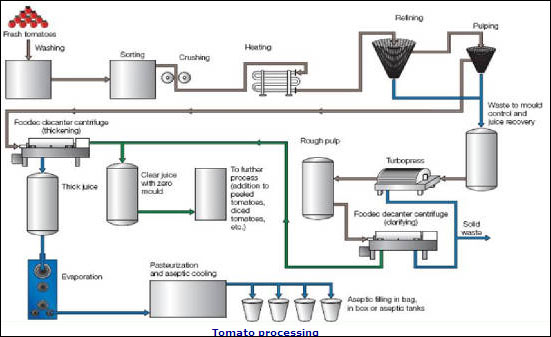 A wide range of products can be obtained from tomatoes, including tomato juice, paste, diced/ peeled tomatoes, strained tomato pulp, sauces and powder. For the industrial market, tomato paste is probably the most important product because it is used as the base for a wide range of other products.